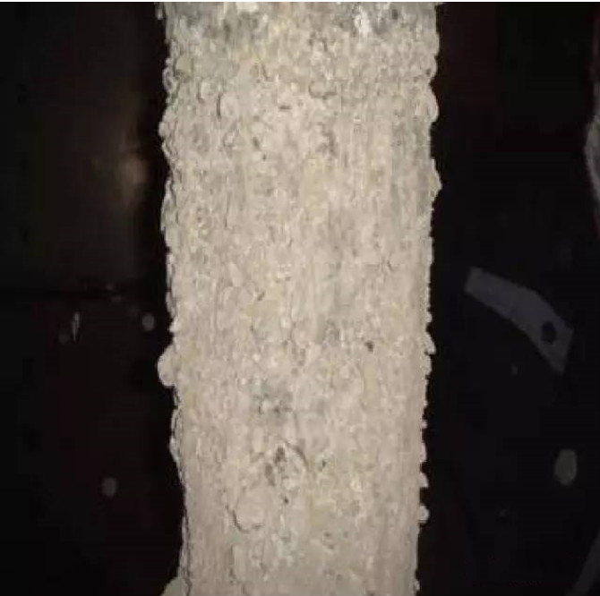 右圖為某工業(yè)垃圾焚燒除塵器中濾袋酸結(jié)露造成糊袋的照片. 該除塵器運(yùn)行溫度穩(wěn)定在150℃左右,但